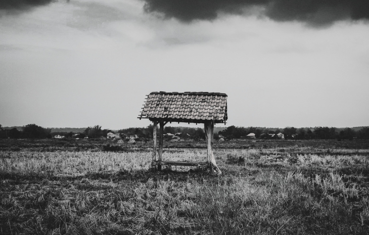 This small, old roof is a silent witness. Under the cloudy sky, this hut stands, waiting. Not for the farmers who harvest their crops, but for a break from the work. The harvest season is over. The golden rice that once covered the field is now just a pile of dry straw. The field is waiting. Waiting for the last drops of rain to fall, before the tractors return to till the soil, planting new hopes on the same land.
